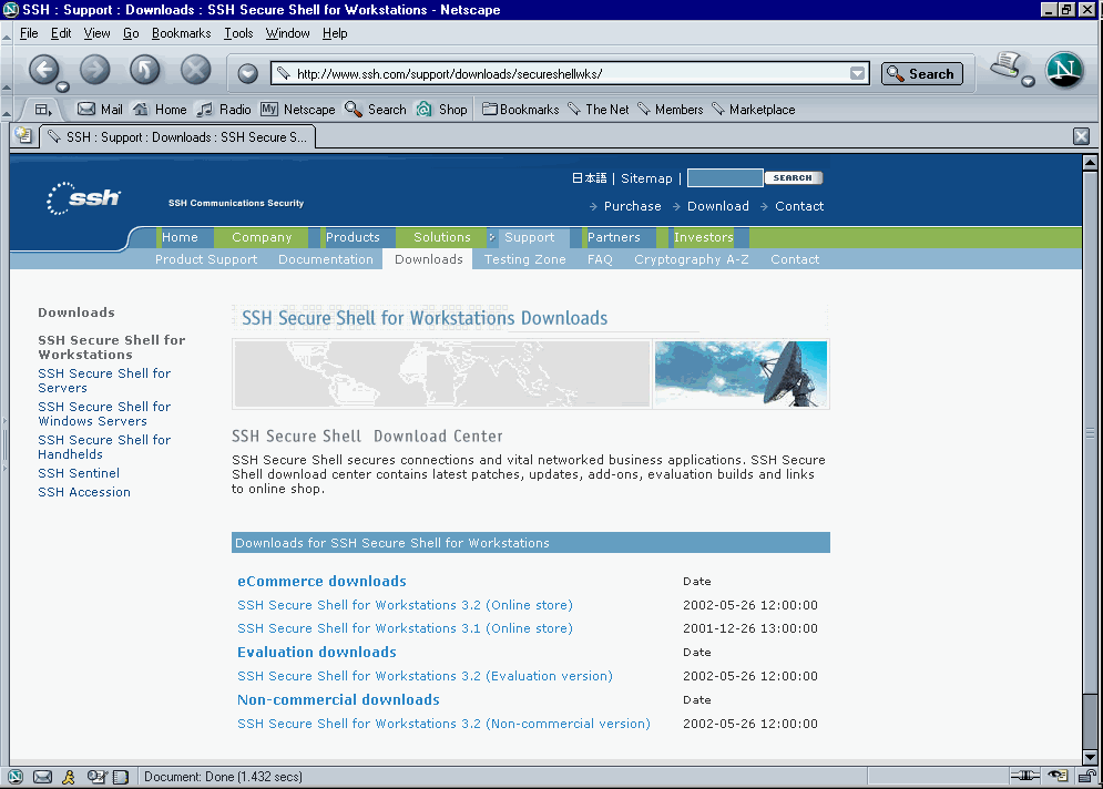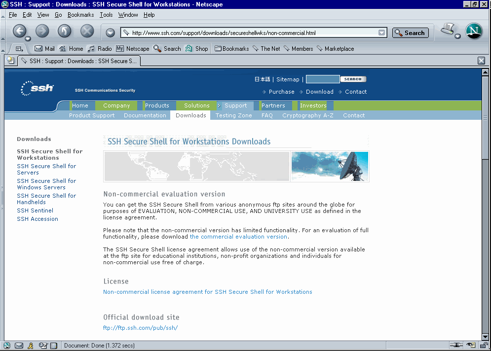 "Official download site, ftp://ftp.ssh.com/pub/ssh"