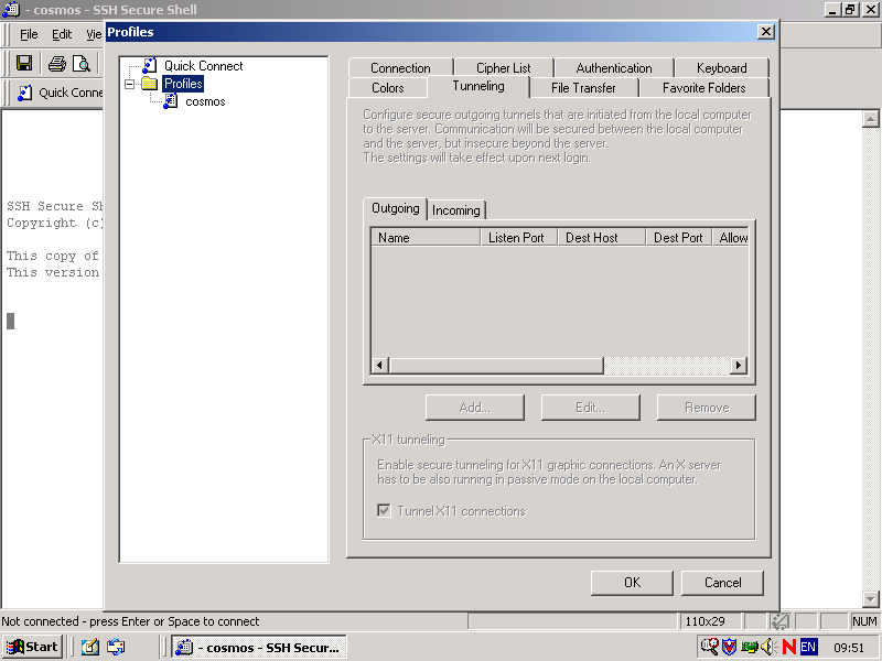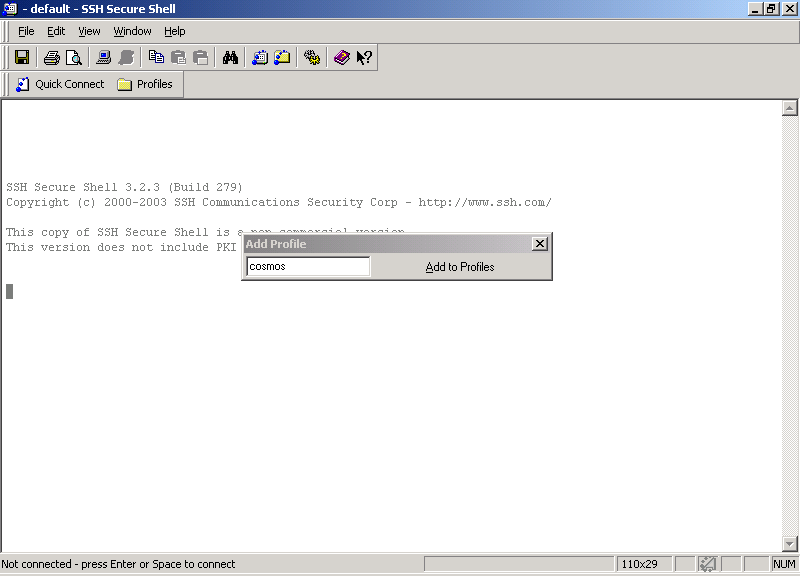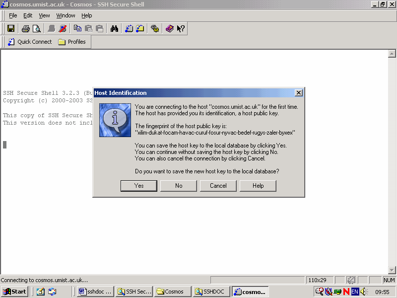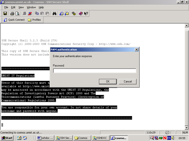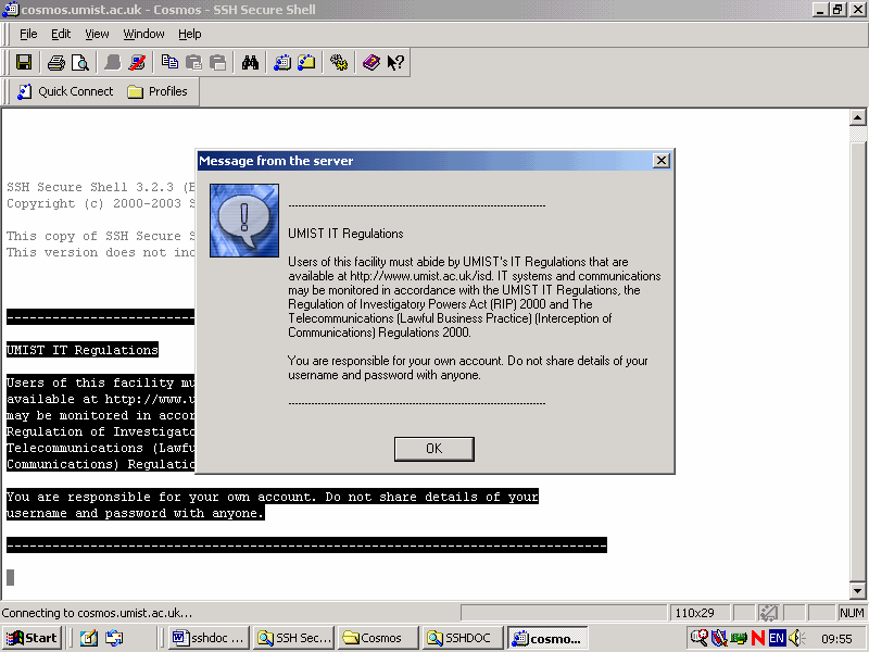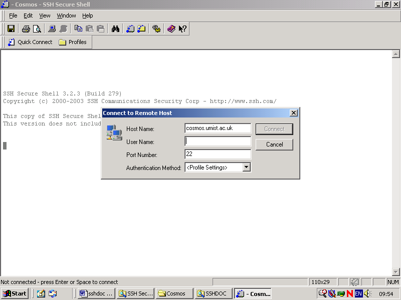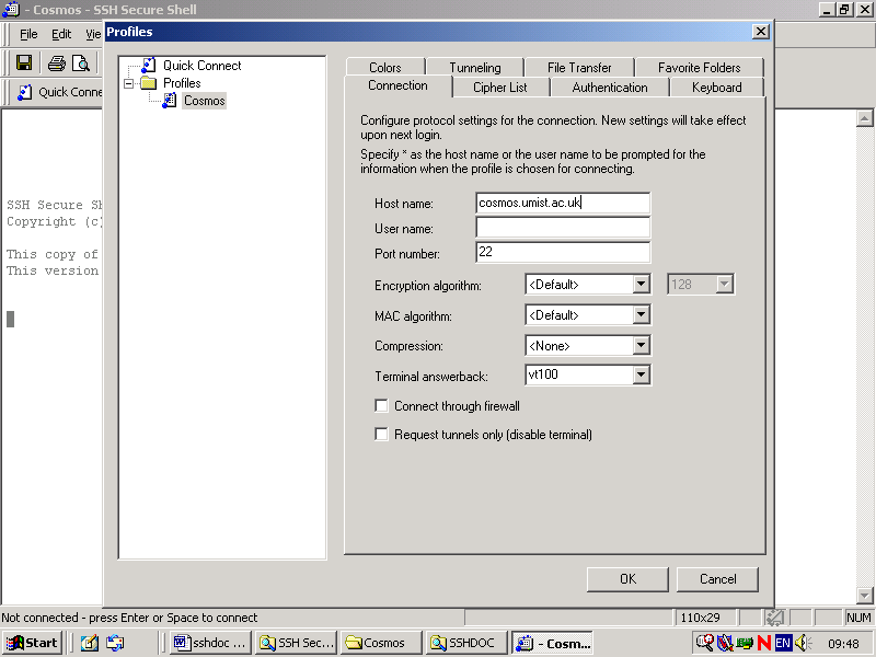 - Under the "Connection" tab, enter "cosmos.umist.ac.uk"