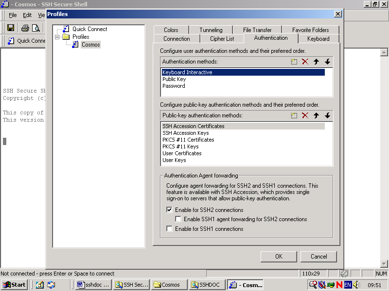 - Under the "Authentication" tab, move "Keyboard Interactive"